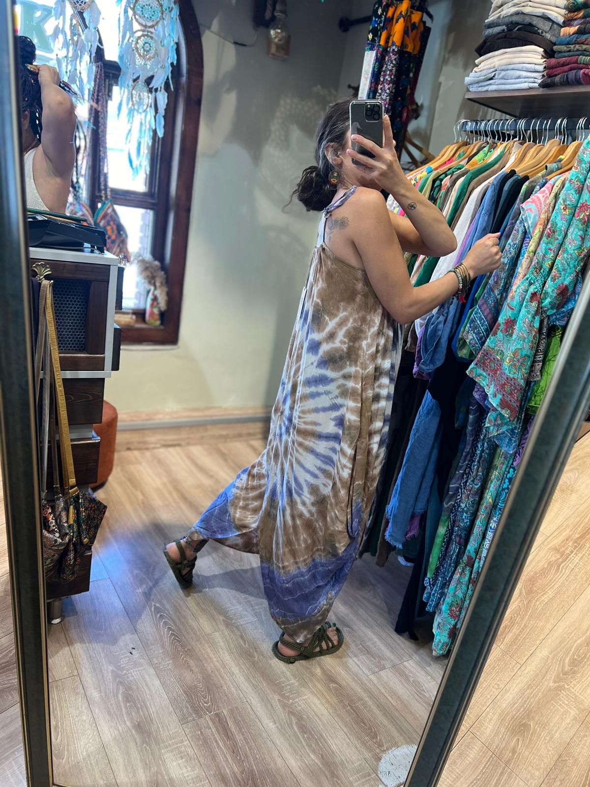 Batik boyundan bağlamalı elbise viskon pamuk kumaştır.